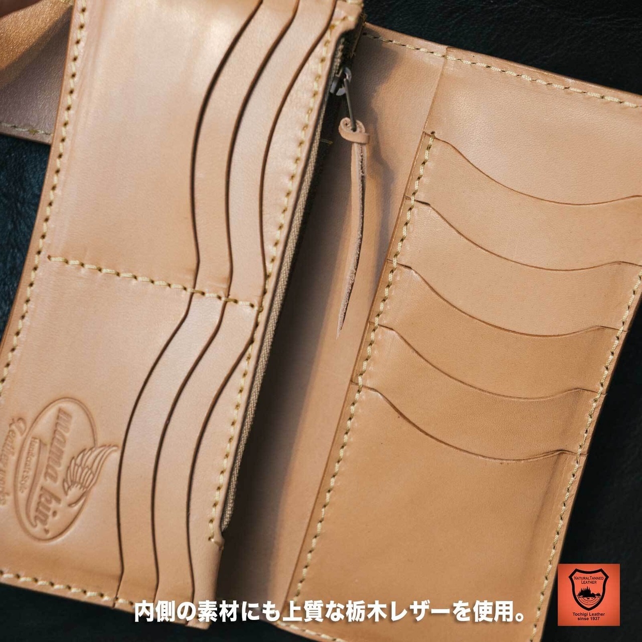 内側の素材にも栃木レザーを使用。